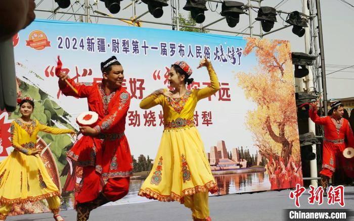 新疆尉犁5月2日电 (邓雅兮)5月1日,新疆·尉犁第十一届罗布人民俗烧烤节开幕,川剧变脸、做饭舞、狮子舞等非遗项目“加持”烤全羊、罗布烤鱼、红柳烤肉等美食,为八方来客送上饕餮盛宴。