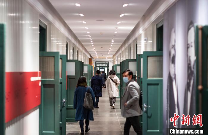 资料图:民众在位于北京市东皇城根北街的中法大学旧址的教学楼内参观。旧址占地面积约5000平方米,建筑为中西合璧风格,教学楼、礼堂、图书馆书库等保留完整、风貌依旧。 中新社记者 侯宇 摄