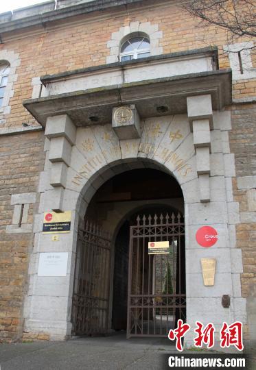 资料图:历经百年历史沧桑,里昂中法大学校门上用中法文篆刻的金色“中法大学”依然清晰可辨。中新社记者 李洋 摄