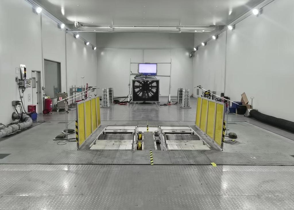 检测室环境舱顶部装有温度和湿度控制器,使环境舱可控温度在负40摄氏度到正60摄氏度之间,可控相对湿度在15%到85%之间。通过控制器模拟不同环境,获得车辆相应的表现数据,以验证相关性能指标。