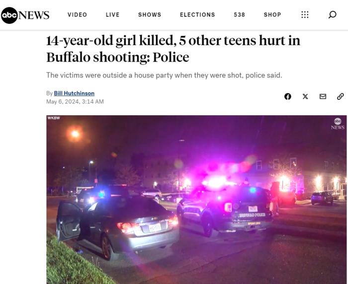 美国广播公司(ABC)报道称,当地时间4日晚,在纽约州布法罗发生枪击事件,造成1名14岁女孩死亡,另有5名青少年受伤。