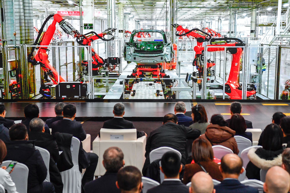 长春,奥迪在中国的首个纯电动车型生产基地——奥迪一汽新能源汽车项目建设进展顺利。智能车间里,新车型加速装配下线。