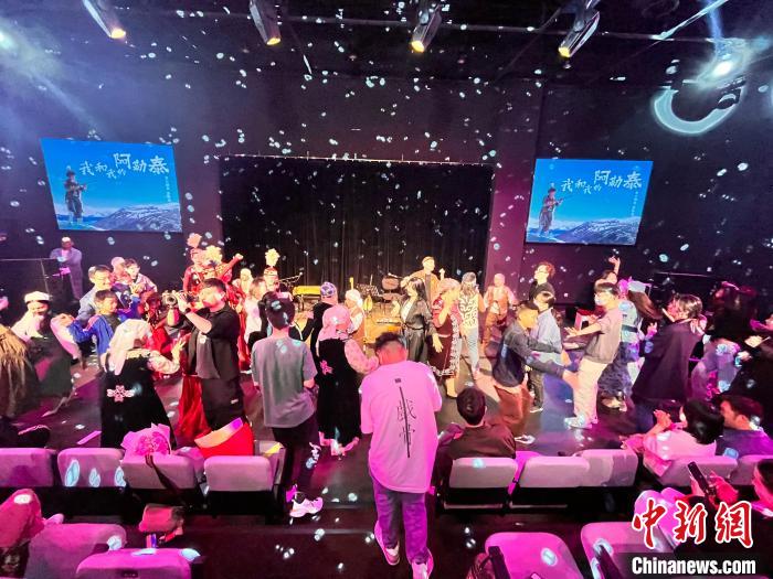 近日,哈萨克族音乐人米兰别克演出现场,观众与音乐人一起跳起了哈萨克族舞蹈“黑走马”。中新社记者 勉征 摄