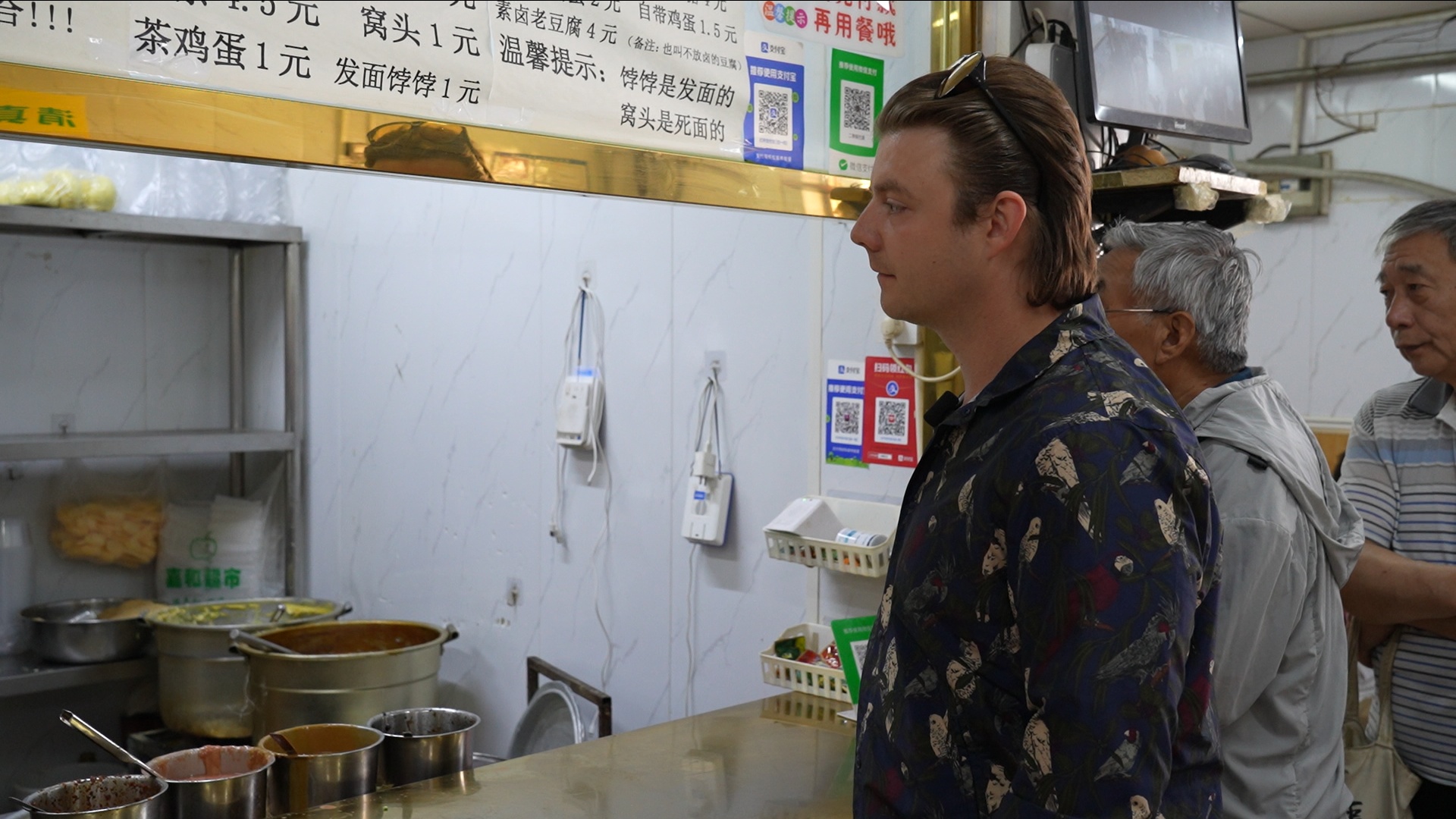 帝汉尼在买早餐。他说锅巴菜、煎饼馃子是天津特色,很多外地人来天津会专门排队来买