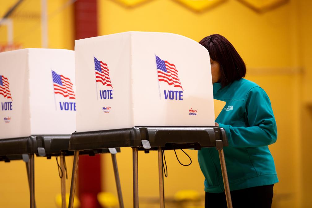 2024年3月5日,选民在美国弗吉尼亚州彼得斯堡的投票点参与投票。当天,美国2024年总统选举迎来所谓“超级星期二”党内初选,十几个州和美国领地的选民为竞选人投票。新华社发,温斯特德·巴恩斯摄