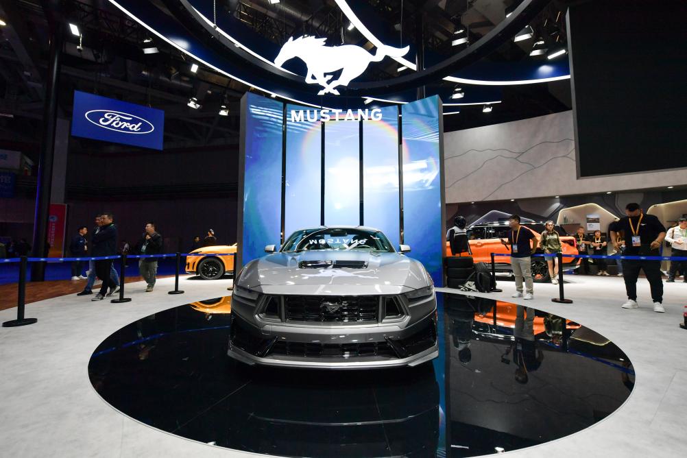 这是2023年11月6日在第六届进博会汽车展区福特汽车展台拍摄的跑车。新华社记者孟涛摄