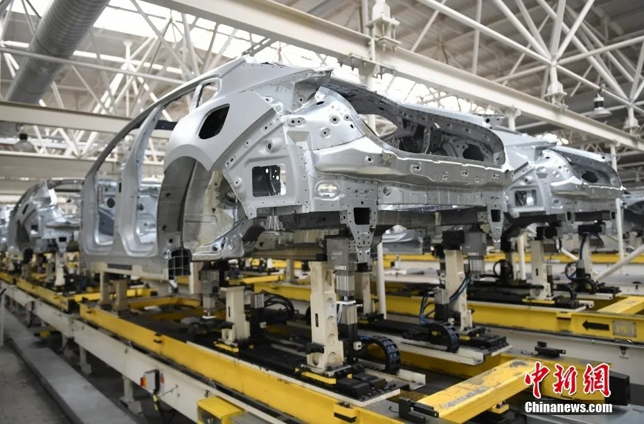 资料图:2024年1月22日,浙江宁波,吉利旗下极氪智慧工厂焊装的新能源车架在自动运输带上传送。中新社记者 王刚 摄