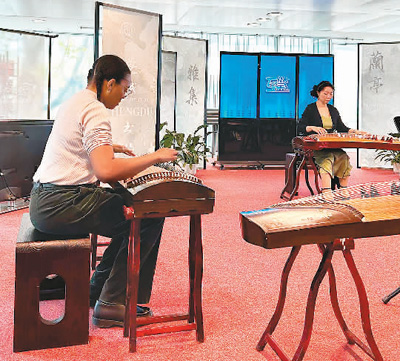 一曲悠悠的《石上流泉》,从玛丽—安吉·博约莫手中的古筝中缓缓流出。一曲罢,周围响起掌声,她有些不好意思地笑了。“我弹得还不好,古筝太难了。”