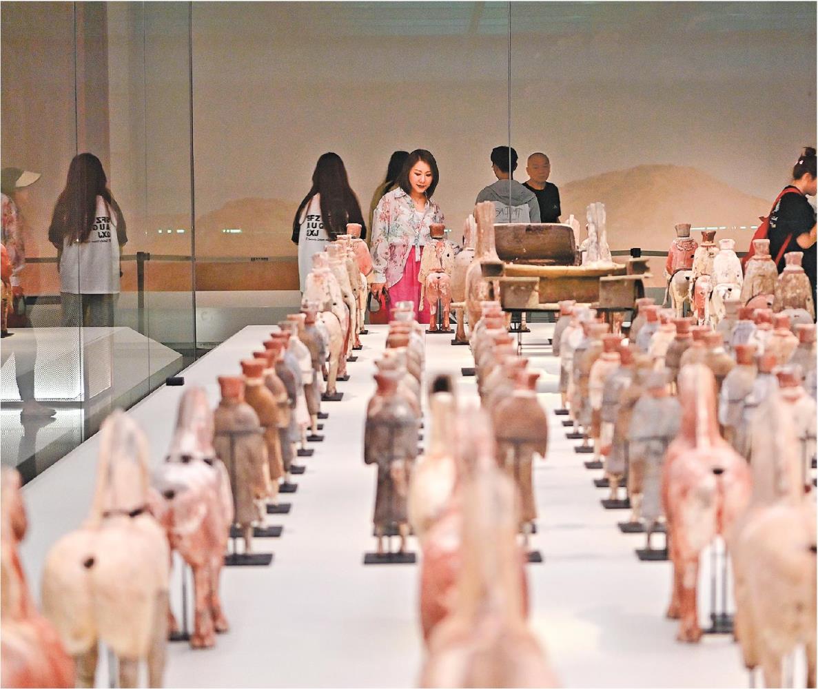 □新华社发 5月17日,游客在青州博物馆参观展品。