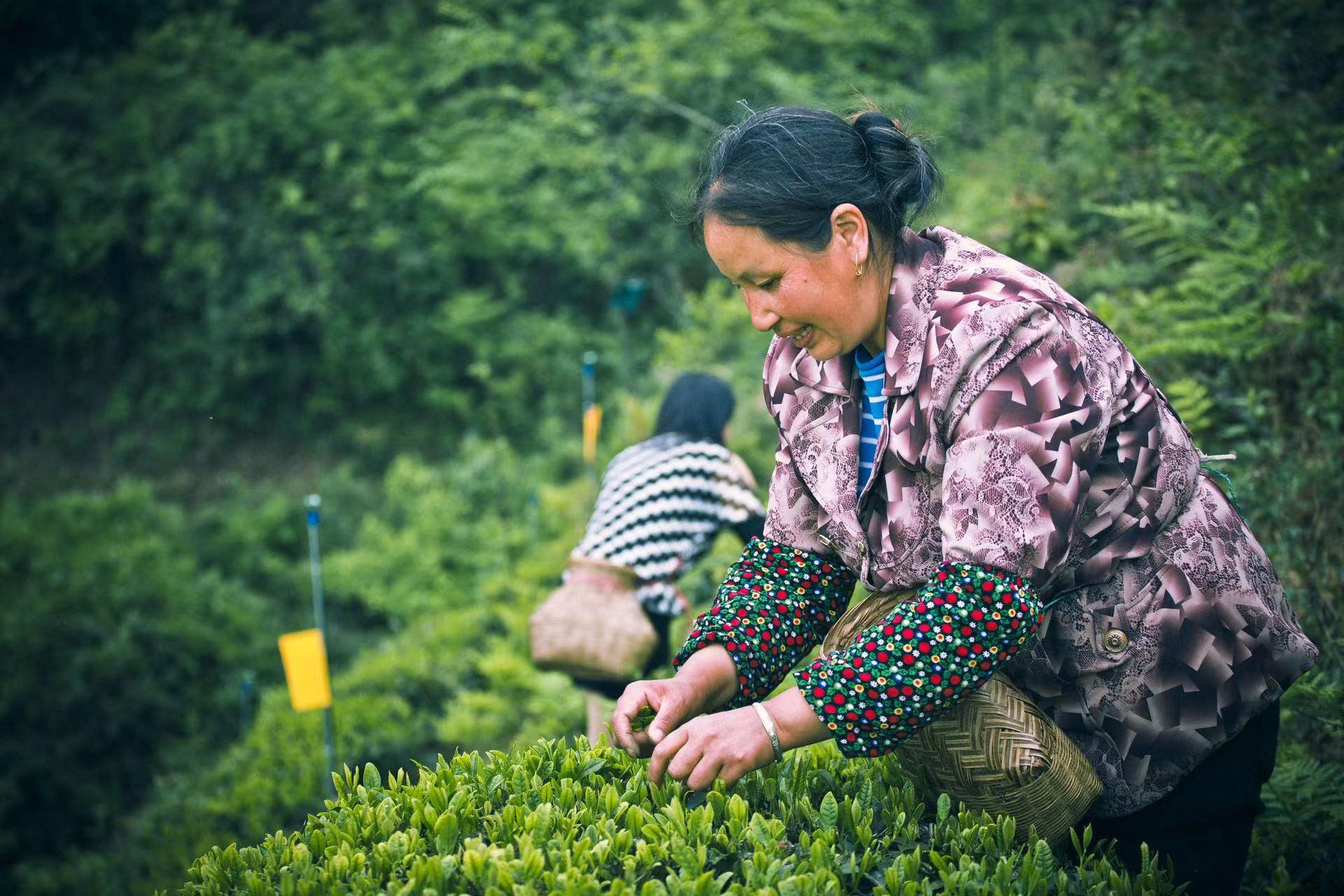青川当地茶农在采摘春季茶树鲜叶。中国网发 成铁川之味公司供图