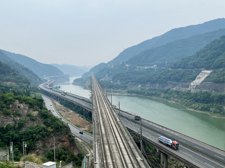 新华网广元5月20日电 (张涵) 曾经,这里崎岖难行,是“难于上青天”的蜀道。如今,高铁驰骋于山岭之间,从西安到成都乘高铁仅需三小时左右即可到达。近日,“发现最美铁路·春涌秦巴走西成”网络宣传活动“发现团”成员来到四川省广元市,走近西成高铁嘉陵江特大桥,探寻千年蜀道的变迁。