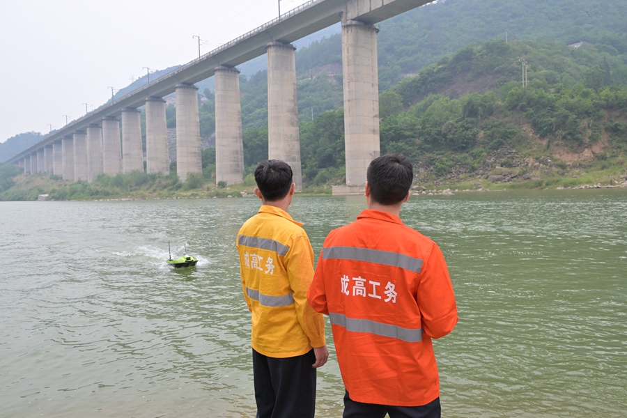 西南山区自然灾害多发,防洪形势严峻,桥梁水下基础受汛期水流冲刷影响大。为解决桥梁基础在水下难以检查的问题,中国铁路成都局集团有限公司成都高铁工务段第一批在西南铁路引入无人测量船。