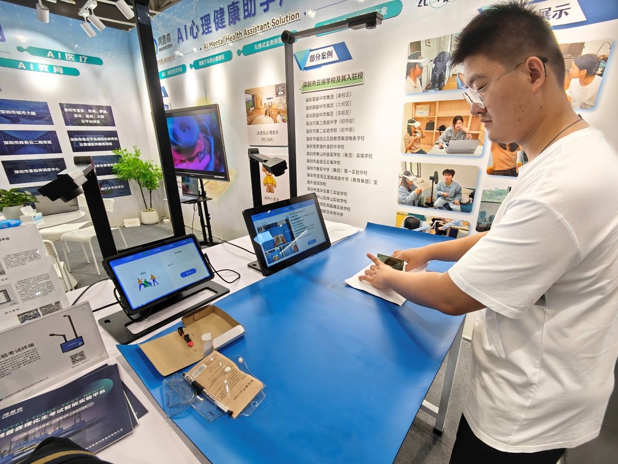 工作人员为记者展示理化生智能实验台 深圳特区报记者 方胜 摄