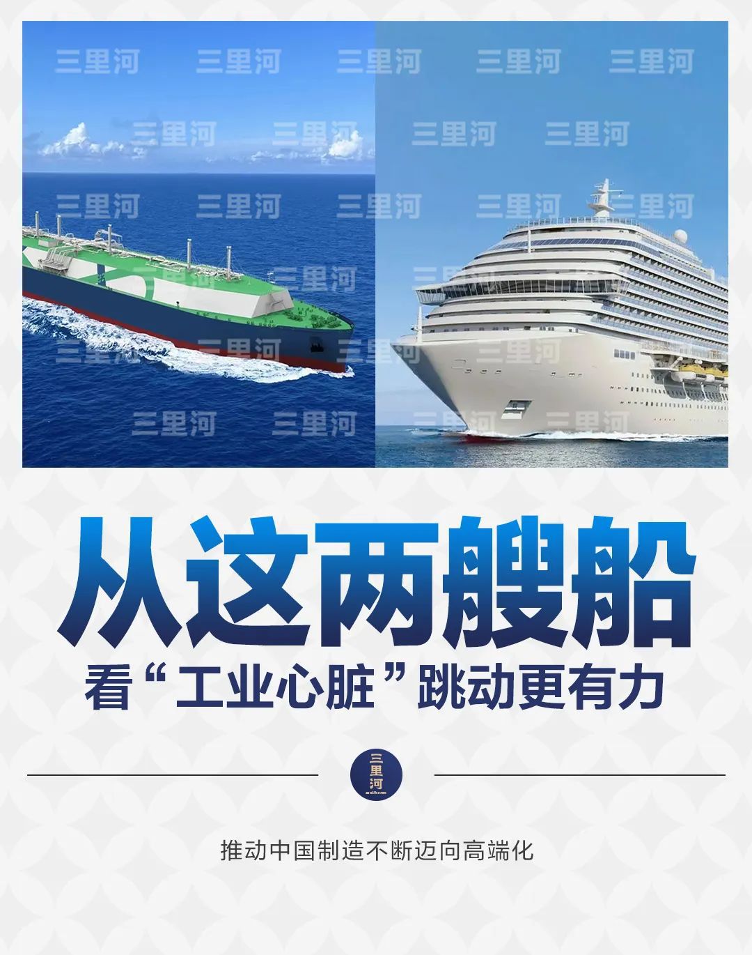 从最近的两艘"船"可见装备制造业实力。近期,中国企业拿下全球最大单笔造船订单,建造18艘全球最大27.1万立方米LNG船。这种船被称为“海上超级冷冻车”,与航空母舰、大型邮轮并称为世界造船业三颗“皇冠上的明珠”。