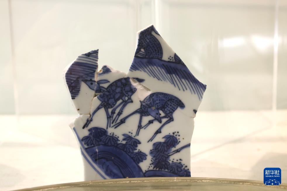 这是5月26日在位于巴林麦纳麦的巴林国家博物馆拍摄的中国青花瓷碎片。 新华社记者 王海洲 摄