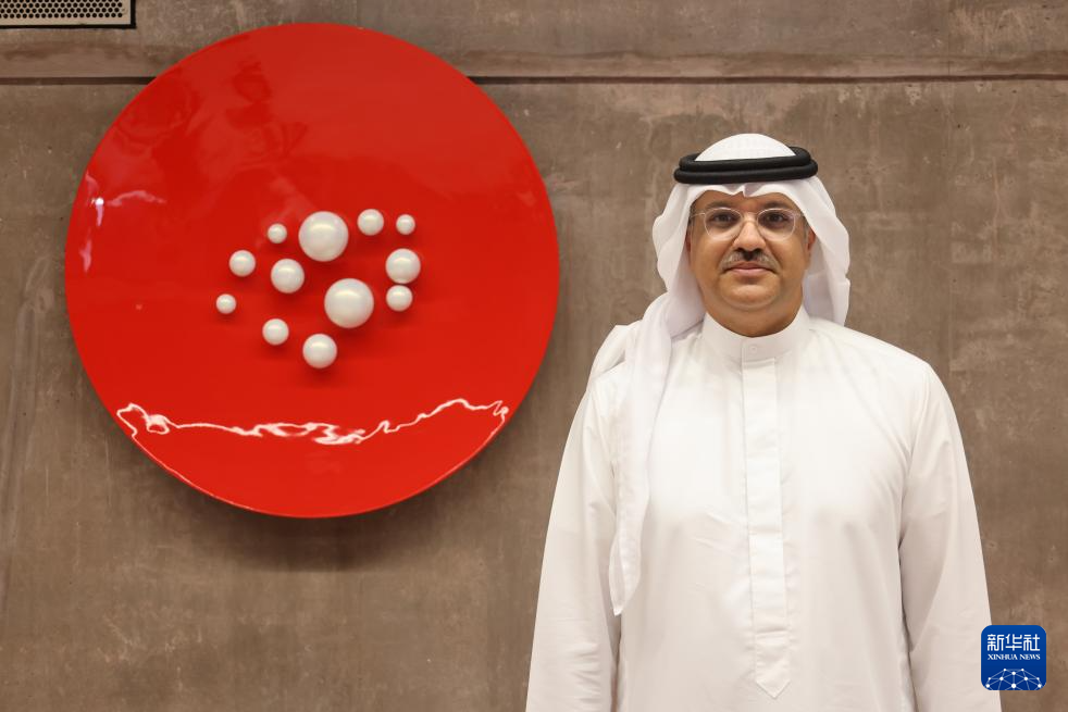 这是5月27日在巴林麦纳麦珍珠之路游客体验中心拍摄的巴林王国文化文物局局长哈利法。 新华社记者 王海洲 摄