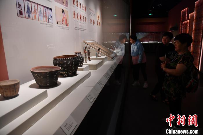 新疆维吾尔自治区博物馆收藏的彩绘木碗、彩绘陶盆等。张浪 摄