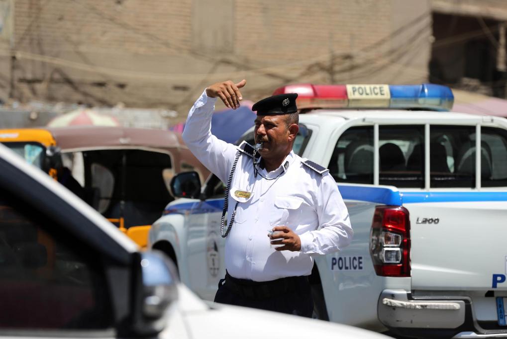 2023年7月18日,在伊拉克巴格达,一名交警在街头指挥交通。新华社发(哈利勒·达伍德摄)