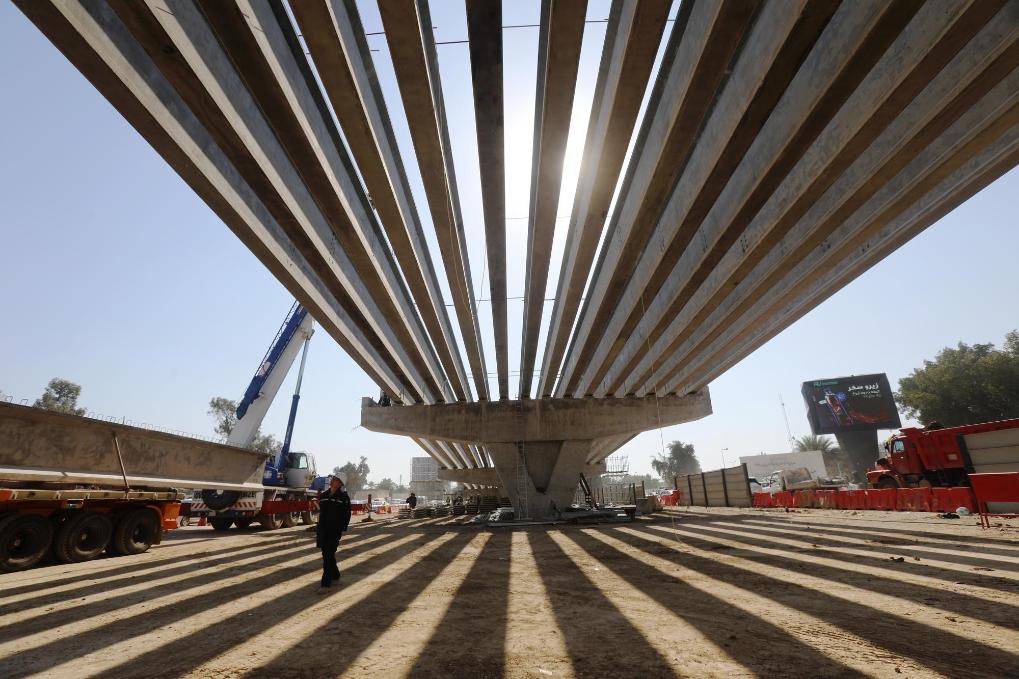 这是3月2日拍摄的伊拉克巴格达尼苏尔立体交通枢纽项目施工现场。新华社发(哈利勒·达伍德摄)