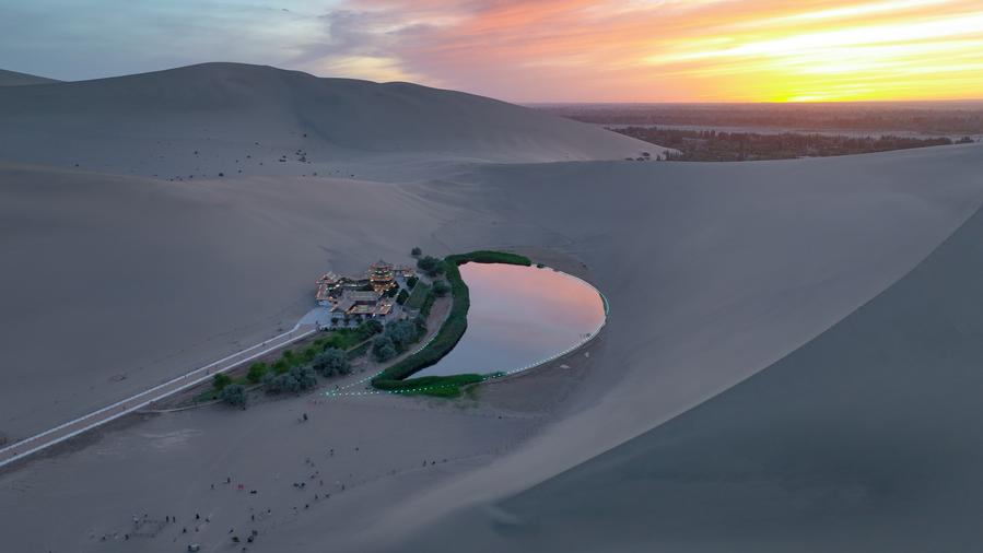 这是6月6日拍摄的鸣沙山月牙泉(无人机照片)。新华社记者 郎兵兵 摄