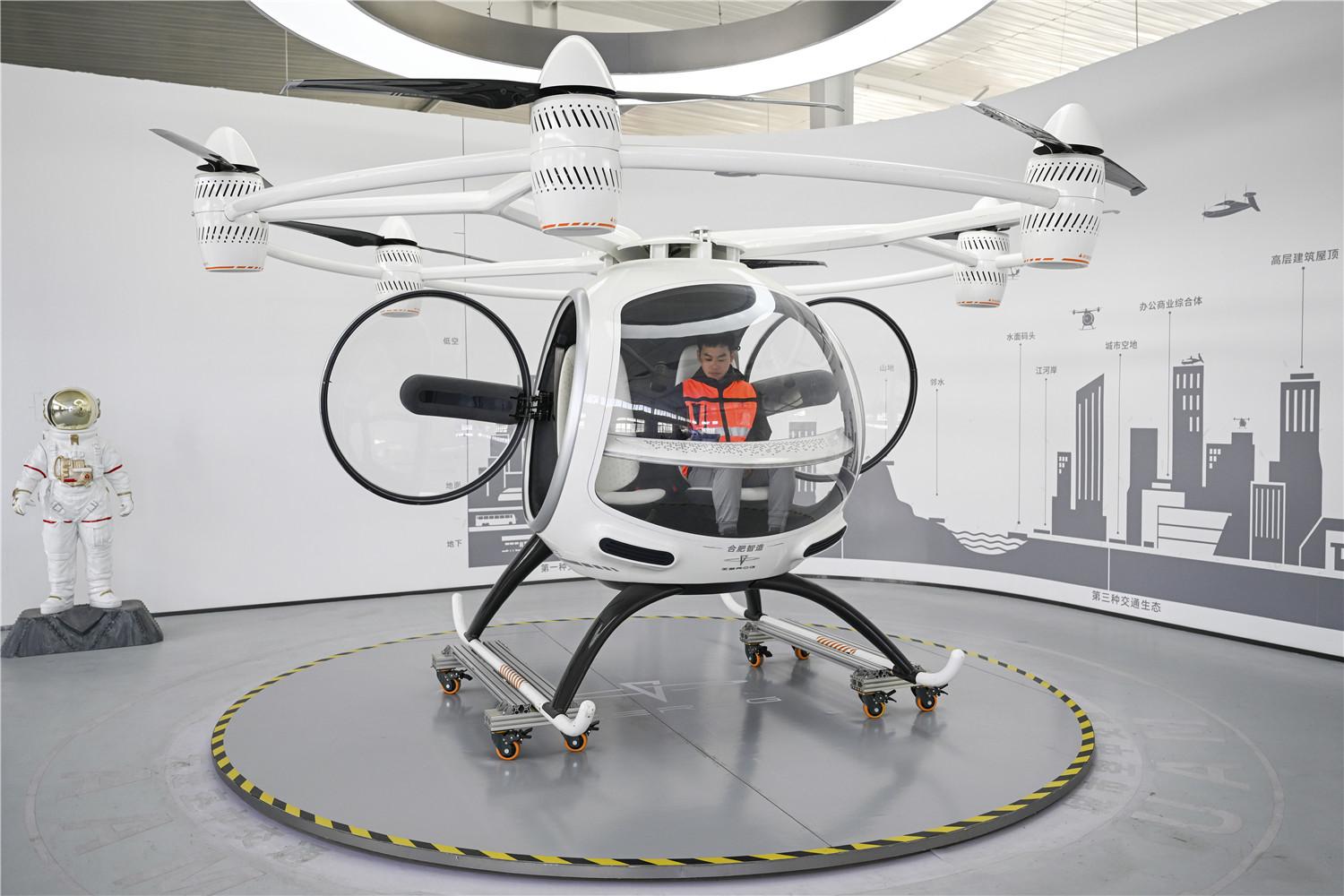 在位于合肥高新区的安徽省内唯一一家载人电动垂直起降(eVTOL)飞行器的生产制造基地,零重力飞机工业(合肥)有限公司工作人员正在有序开展各型新能源飞行器的总装、调试、试飞等工作。