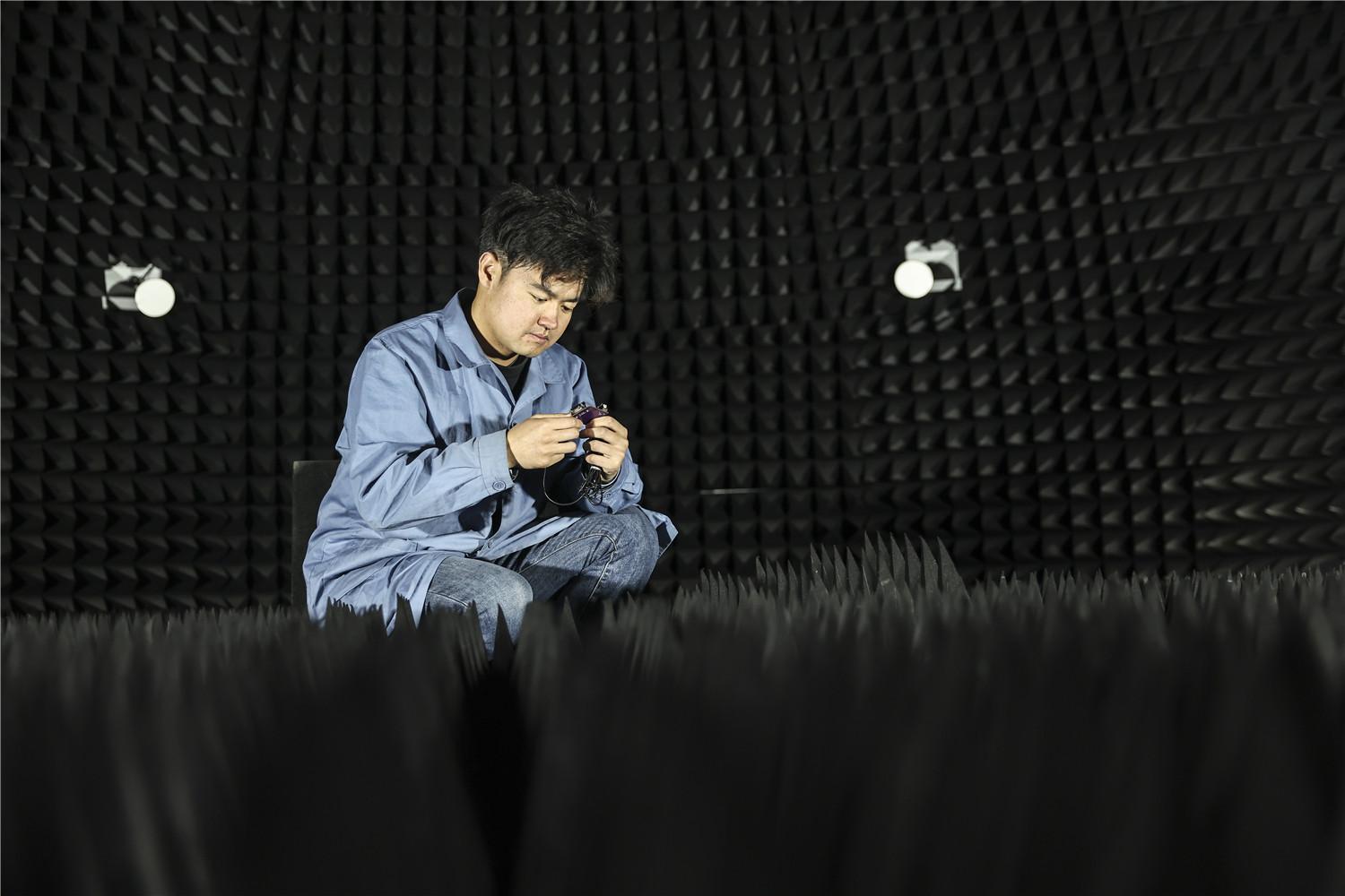 宿州高新区的华瑞赛维(宿州)科技有限公司内,工作人员在对全球仅3台且亚洲唯一的全景虚拟导航卫星测试系统进行调试。