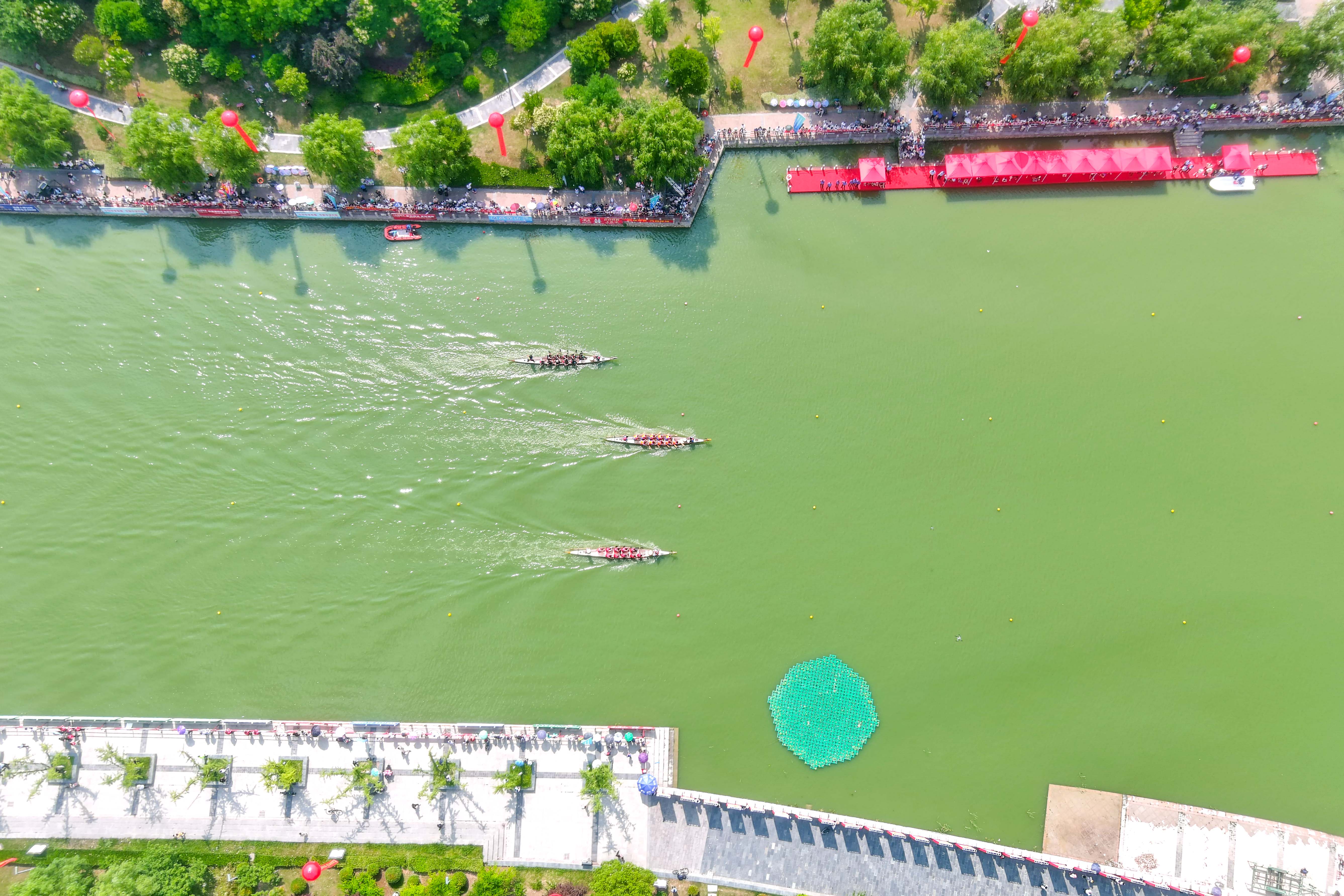 赛龙舟运动是一项极具民俗色彩的竞技体育项目,也是中国传统民俗与运动精神的完美结合。此次龙舟赛采用12人制,共有29支参赛队伍参加400米直道竞速。龙舟赛道上,百舸争流,鼓声震天,选手们齐心协力、奋勇向前,争夺冠军的场面扣人心弦,为观众带来一场水上竞逐视觉盛宴。岸边的观众也是热情高涨,为参赛选手加油助威,欢呼声此起彼伏。