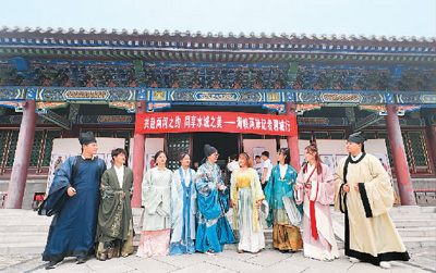 在聊城文庙,台湾媒体人穿汉服体验传统文化。