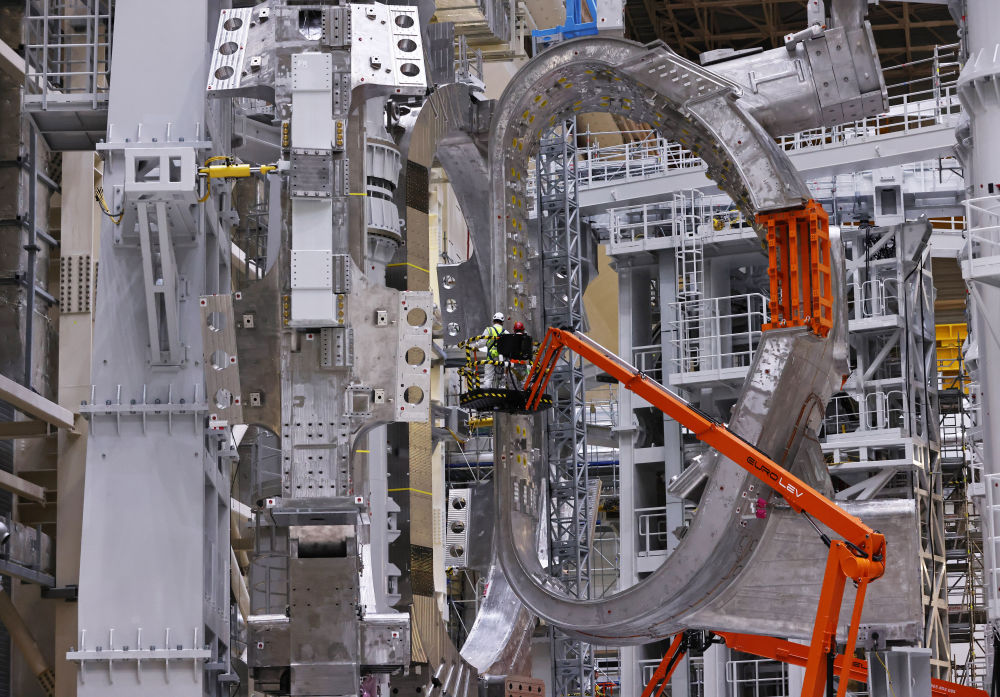 ↑这是在法国ITER项目建设现场拍摄的安装中的托卡马克装置。
