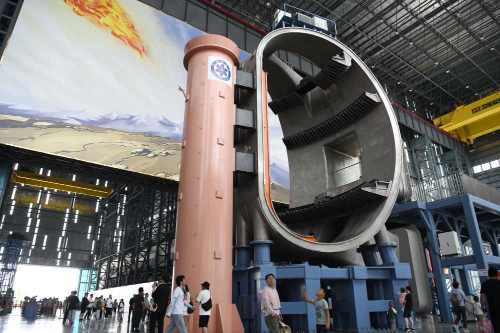 ↑5月18日,在中国科学院合肥物质科学研究院等离子体物理研究所,市民参观EAST。