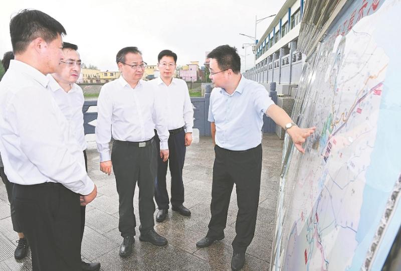 7月12日,省委书记梁言顺在王家坝闸实地察看闸体水情,了解淮河防汛、水利工程建设等情况。记者 杨竹 许昊 摄