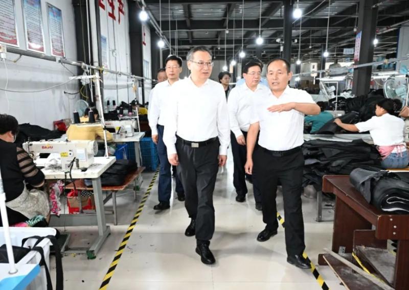 7月12日,省委书记梁言顺在阜南县红亮箱包有限公司,了解企业生产经营情况。