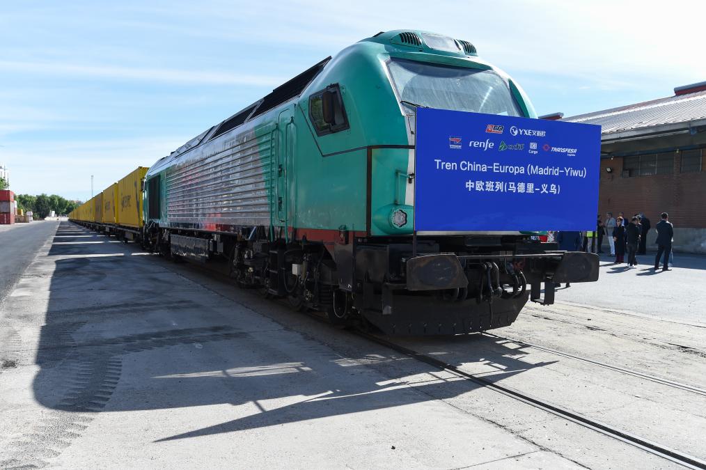 5月8日,在西班牙马德里,中欧班列(义乌—马德里)开行十周年纪念号班列准备发车。新华社发(古斯塔沃·巴连特摄)
