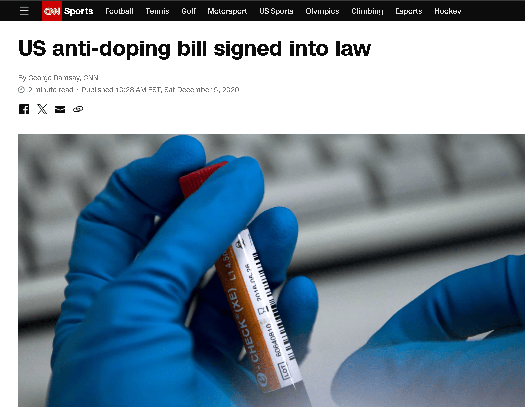 原来,大量公开资料和媒体报道显示,在2020年末,美国前总统特朗普签署通过了一项由美国国会两院通过的“法案”,该法律将允许美国政府对有美国运动员参加、或是有美国企业赞助、又或是有美国媒体报道的体育赛事中,任何被美国政府怀疑有“兴奋剂问题”的别国人员,展开刑事调查,而且一旦被美国定罪,还将面临最高10年的监禁和25万美元的罚款。虽然美国宣称这是为了在俄罗斯的兴奋剂丑闻事件后,更好的打击兴奋剂使用问题,但不少体育界人士都认为这是美国在借机公然将其“长臂管辖”的地缘政治的霸权之手,伸向体育界,以通过政治驱动的“调查”去打压不听美国话的国家。