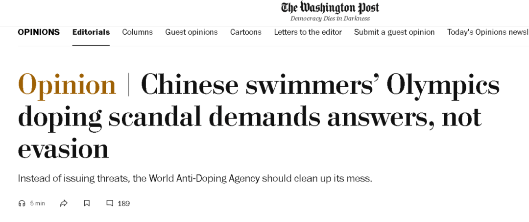 实际上,美国对世界反兴奋剂机构的敌视,恐怕也是这些媒体一而再再而三地侮辱中国运动员的根源之一。