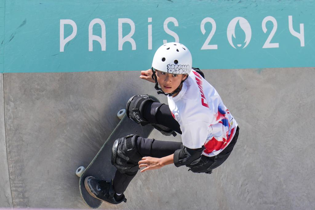 ↑7月31日,邓雅文在巴黎奥运会自由式小轮车女子公园赛决赛中。新华社记者 胡虎虎 摄