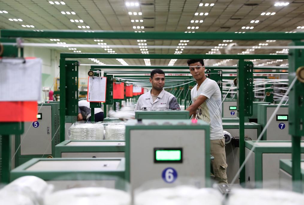 这是2022年9月7日在泰达合作区拍摄的中国巨石埃及玻璃纤维股份有限公司(巨石埃及)生产车间。新华社记者 王东震 摄