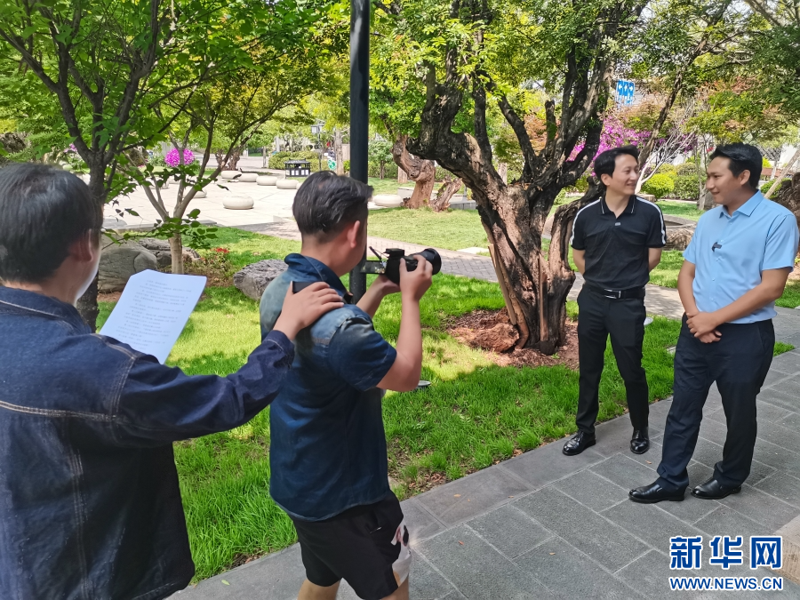 “巍山融媒”在拍摄“法治小剧场”素材(资料图)。新华网发(供图)