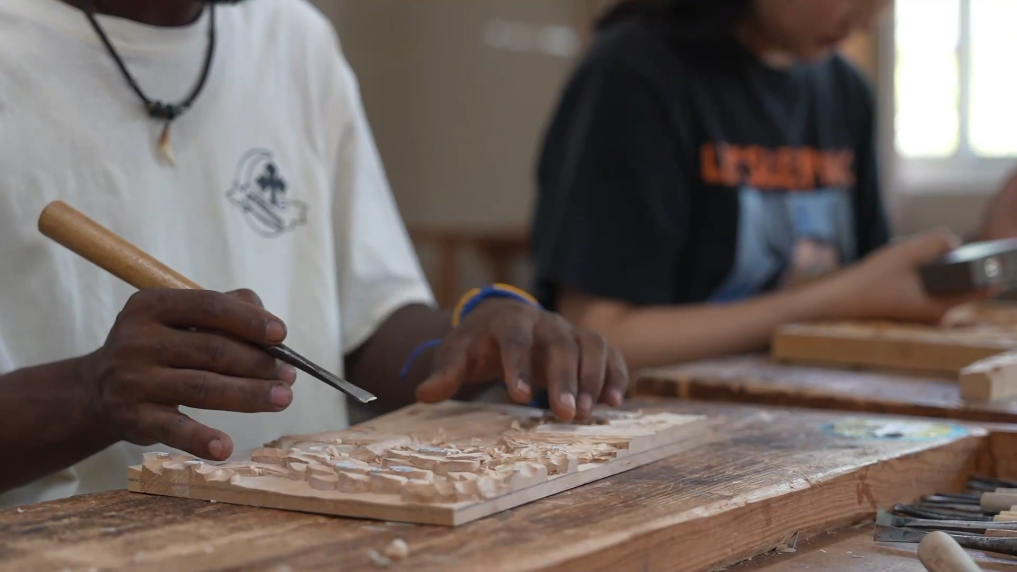 2018年,首批21名来自刚果(布)的留学生在“一带一路”倡议下,来到位于浙江金华的浙江广厦建设职业技术大学学习木雕技艺,成为浙江省首批木雕艺术类专业留学生,自此拉开了东阳与刚果(布)国际友好交流的序幕。