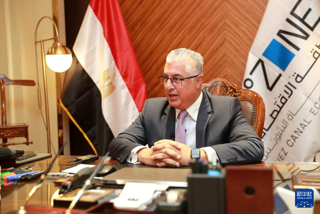 8月11日,埃及苏伊士运河经济区总局主席瓦利德·贾迈勒丁在埃及新行政首都接受新华社记者专访。新华社记者 隋先凯 摄