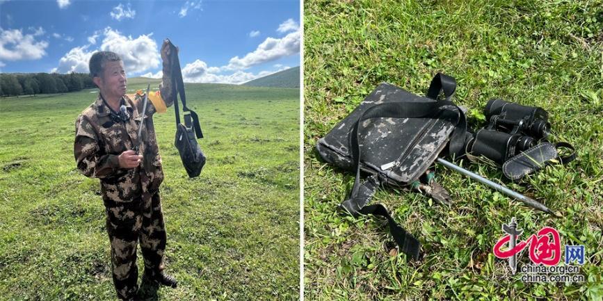 王玉发放牧巡边时带的“装备包”,里面装着望远镜、锥子、钳子。中国网记者 吴佳潼 摄