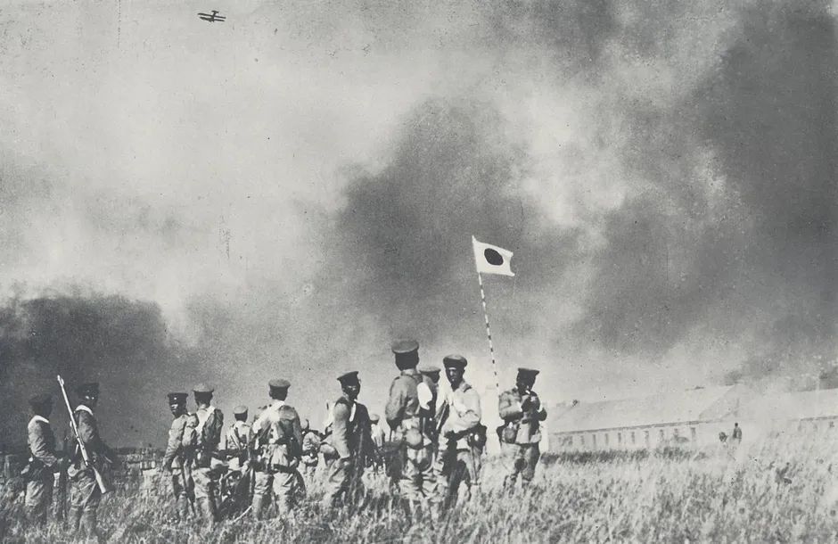 图为“九一八”事变前日军在中国大营附近演习,以便在铁路炸毁后立刻进攻中国驻军营地。