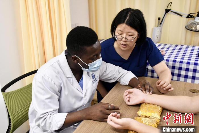 中新网杭州9月4日电(张煜欢)“把脉时候要注意,将食指、中指和无名指放在患者的桡骨茎突,将中指定住关脉,用食指按在关前定寸脉,用无名指在关后定尺脉,感受脉搏的变化……”在中医护师的指导下,来自非洲加纳的“00后”罗蒙将手指置于患者手腕穴位,沉下心感受指尖的一搏一动,在气脉沉浮间体味中医的奥妙。