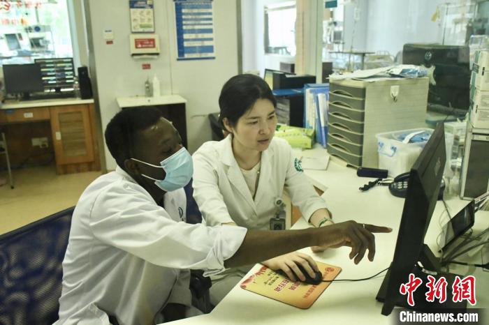 罗蒙在导师魏叶红指导下,在ICU内了解病人相关情况。郭天奇 摄