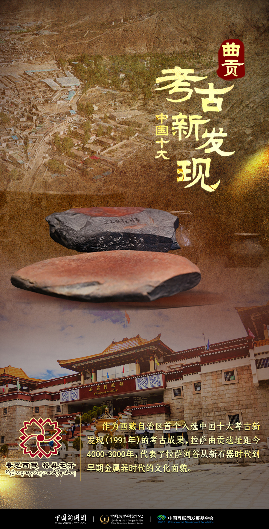 卡若遗址距今约5000年左右,第一次将西藏高原史前人类生存活动的科学证据揭露于世。2021年10月,西藏昌都卡若遗址入选中国“百年百大考古发现”。曲贡遗址位于拉萨市北郊,距市区约五公里,是迄今在西藏发现的海拔最高、面积最大,文化层堆积较厚,文化内涵极其丰富的遗址之一,被誉为拉萨的“半坡”。它们勾勒出青藏高原的文明年轮。