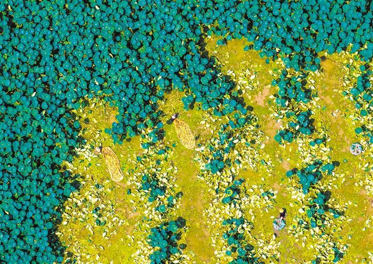 ②8月31日,江苏省淮安市淮阴区诸庄村,村民在采挖莲藕。 贺敬华摄(中经视觉)