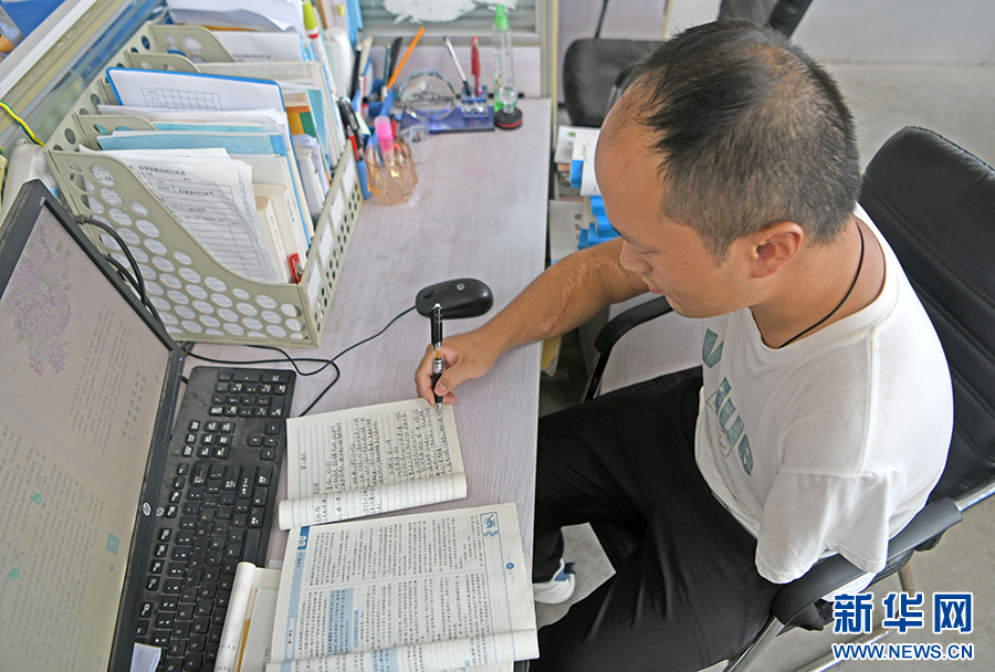“苔花如米小,也学牡丹开。”周勇说,在乡村小学这个舞台上,愿意用自己残疾之躯为孩子们点亮成长的光!新华网发(陈彬 摄)
