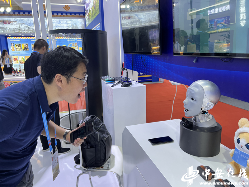 “好逼真啊!”在安徽展区现场,一台仿生头部机器人正在模仿现场参观者的动作表情——抬头、眨眼、张嘴、微笑等等,不论参观者做出怎样细微的表情,仿生机器人都会立刻模仿出来。据悉,这件展品是由无论科技(安徽)有限公司打造,该公司团队来自中国科学技术大学计算机学院,专注于交互型机器人软硬件解决方案创新,致力于以智能技术打造具备“生命力”的多模态情感交互机器人。公司联合创始人李志坚在现场表示,他们的研究是为未来人形机器人走进家庭做准备。