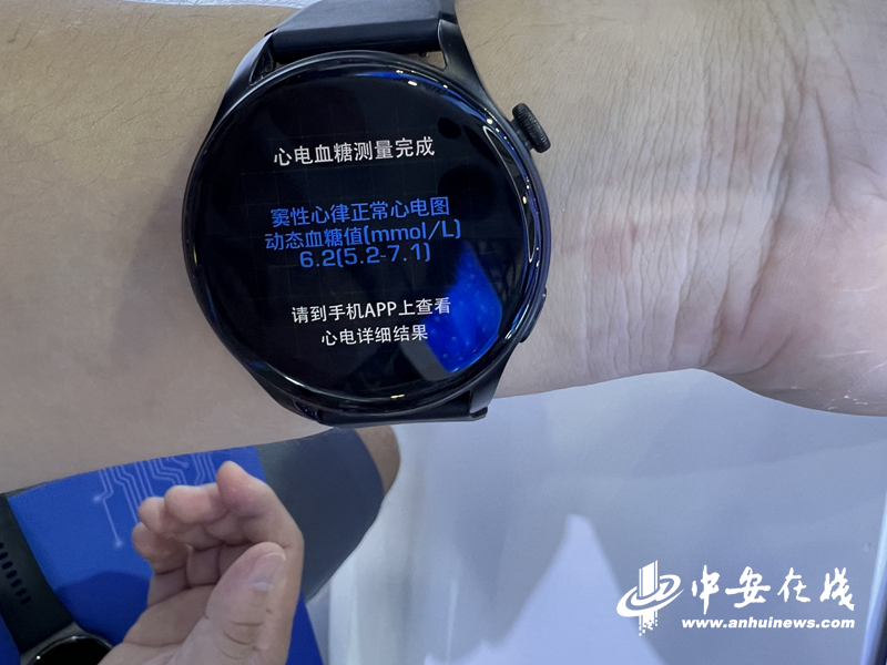 在安徽展区,科技含量十足的现代医疗设备让人眼前一亮。“通过佩戴这个手表,就可以实现血糖检测。”安徽奇智科技有限公司销售经理刘超明告诉记者,该智能手表通过公司自主设计的光子芯片和生物医学光电模组,可以实现无创人体血糖检测。记者现场体验,戴上手表,经过一分多钟的时间,动态血糖值就显示在了手表屏幕上。据介绍,奇智科技将以提升市场占有率为首要目标,继续推进无创血糖检测临床产品研发。