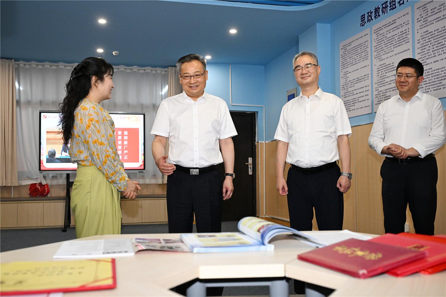 安徽大学是国家“双一流”和“211工程”建设高校。梁言顺、王清宪来到这里,看望慰问高层次人才团队代表,详细了解学校一流学科建设成效,参观新型磁性功能材料与器件安徽省重点实验室。梁言顺指出,推进“双一流”建设,是新时代高等教育强国建设的引领性和标志性工程。要认真落实三中全会“深化教育综合改革”的要求,积极推动教育科技人才的有效贯通和深度融合,优化学科专业和人才培养布局,努力争创一批在全国叫得响、立得住、排得上的专业学科,推动高质量内涵式发展。